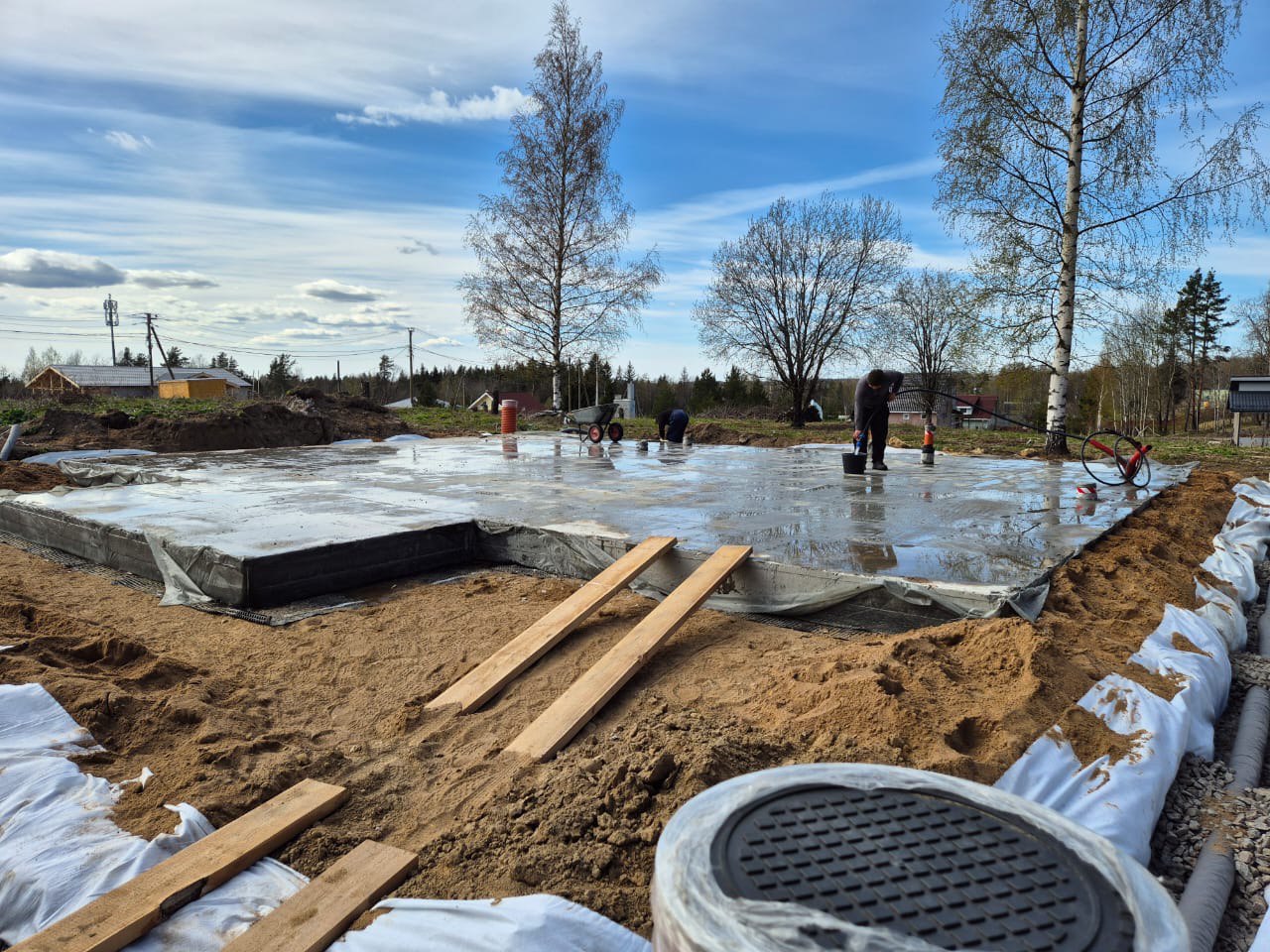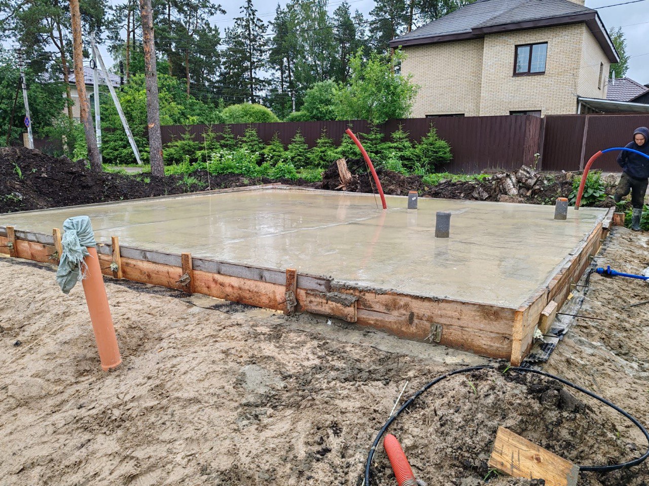 Проведен полный цикл работ под ключ. Особое внимание уделили жесткости опалубки и идеальной геометрии — перепад уровня по диагоналям составил менее 5 мм.