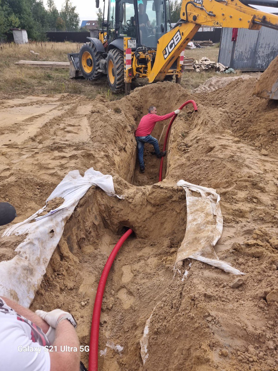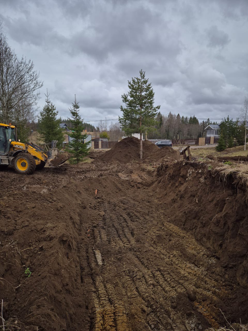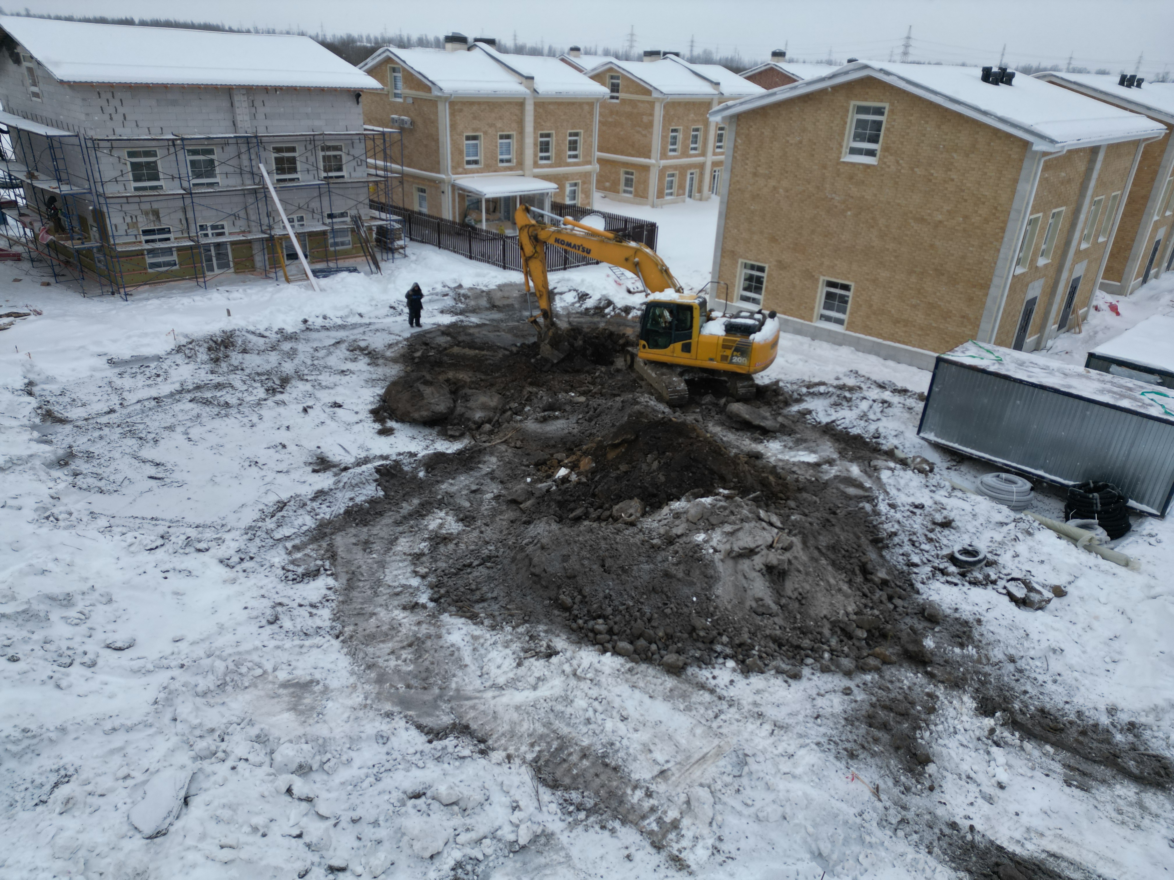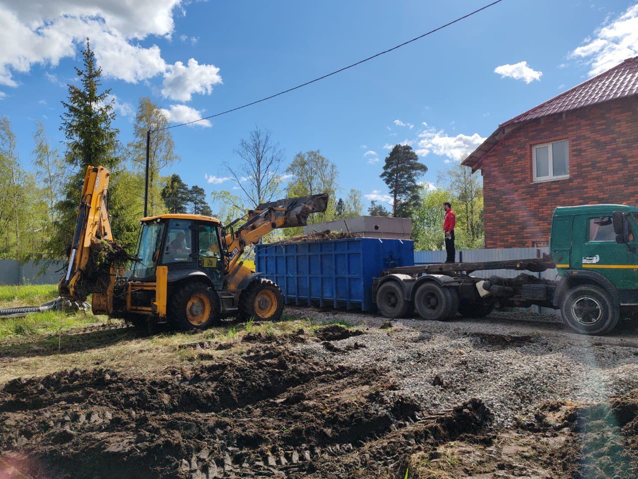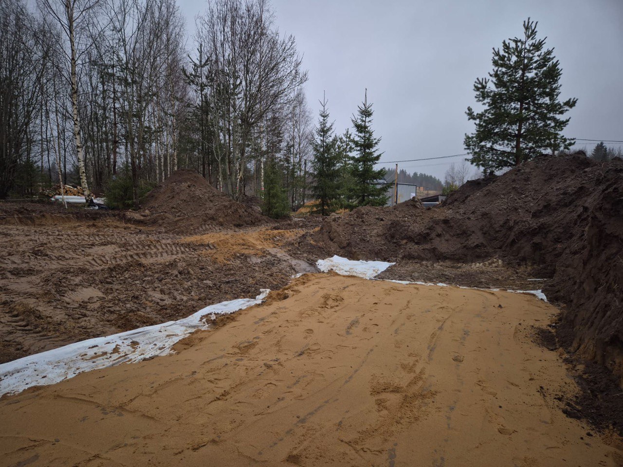 Выполнили масштабную выемку грунта экскаватором и устройство песчано-щебеночной подушки.