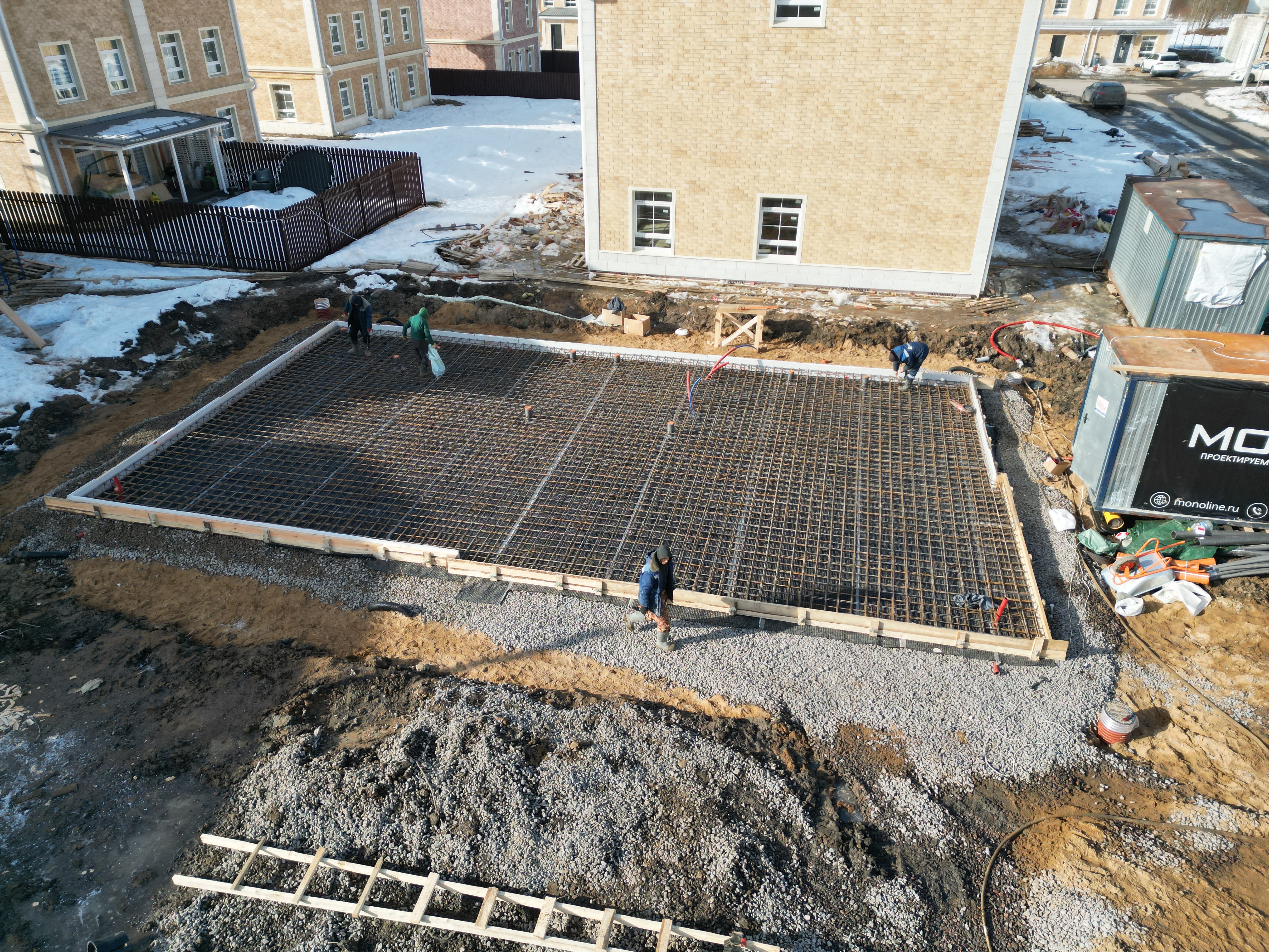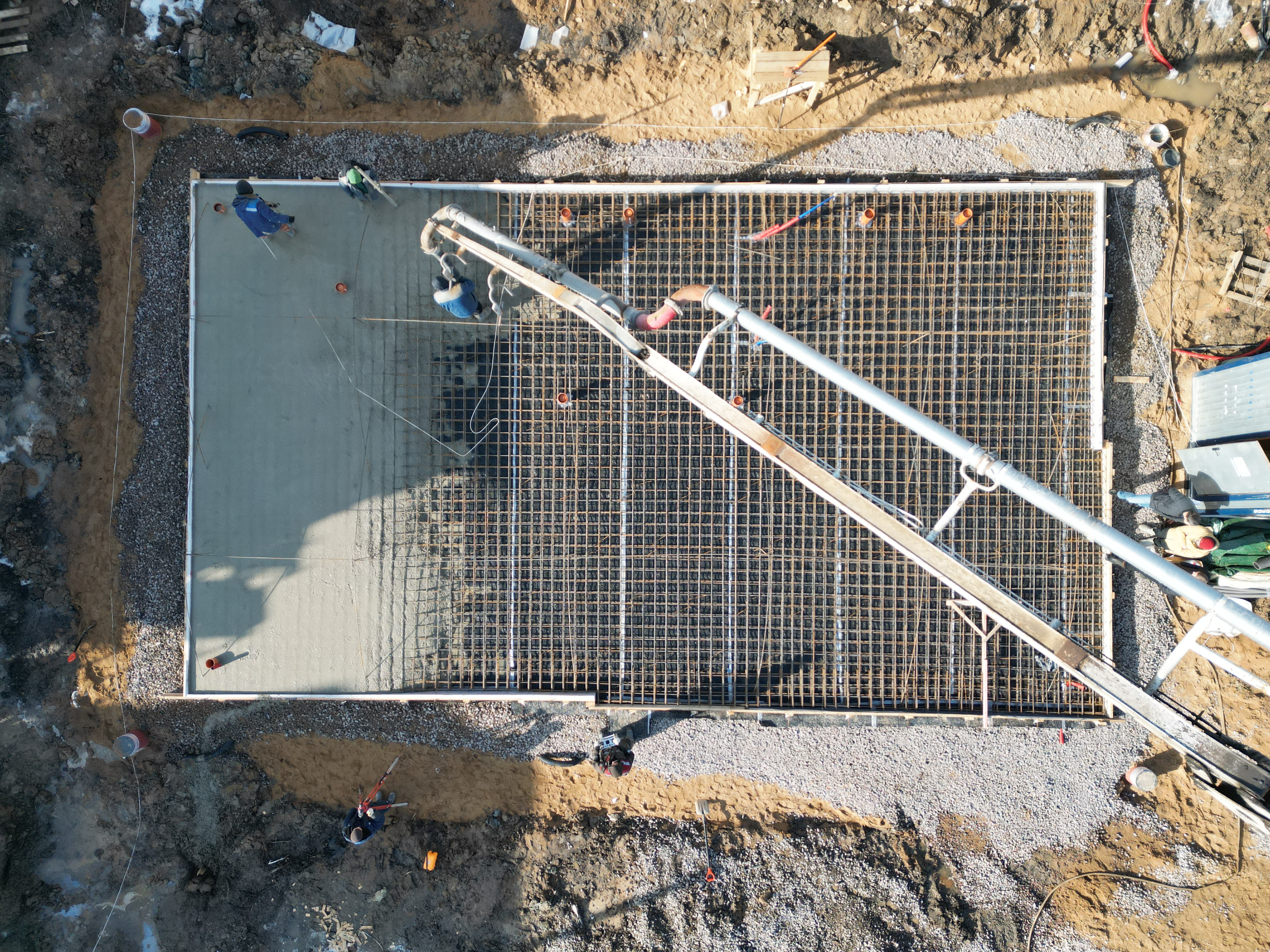 Заливка железобетонного основания (8,9 х 15,6 м).