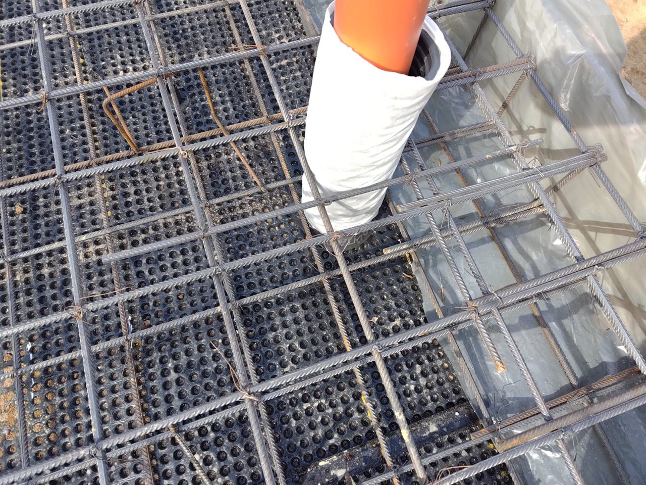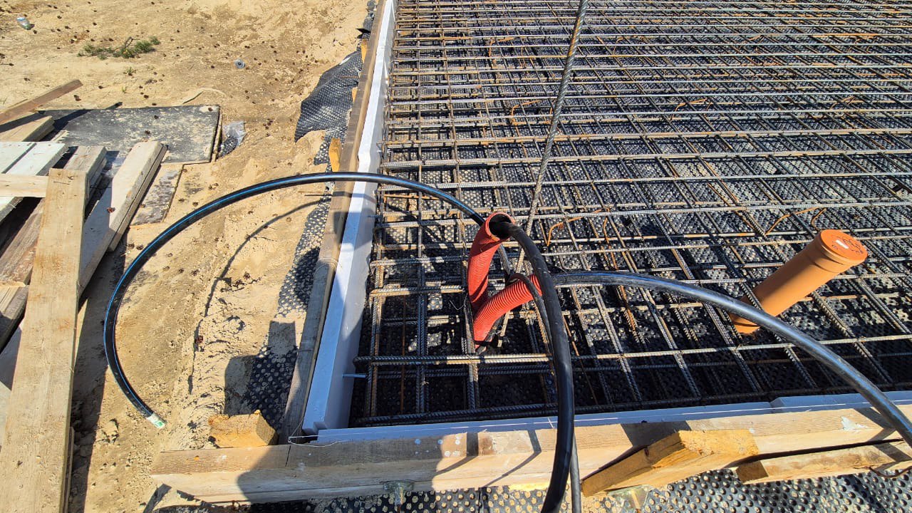 Связали надежный двойной арматурный каркас и заранее вывели все закладные под инженерные сети.