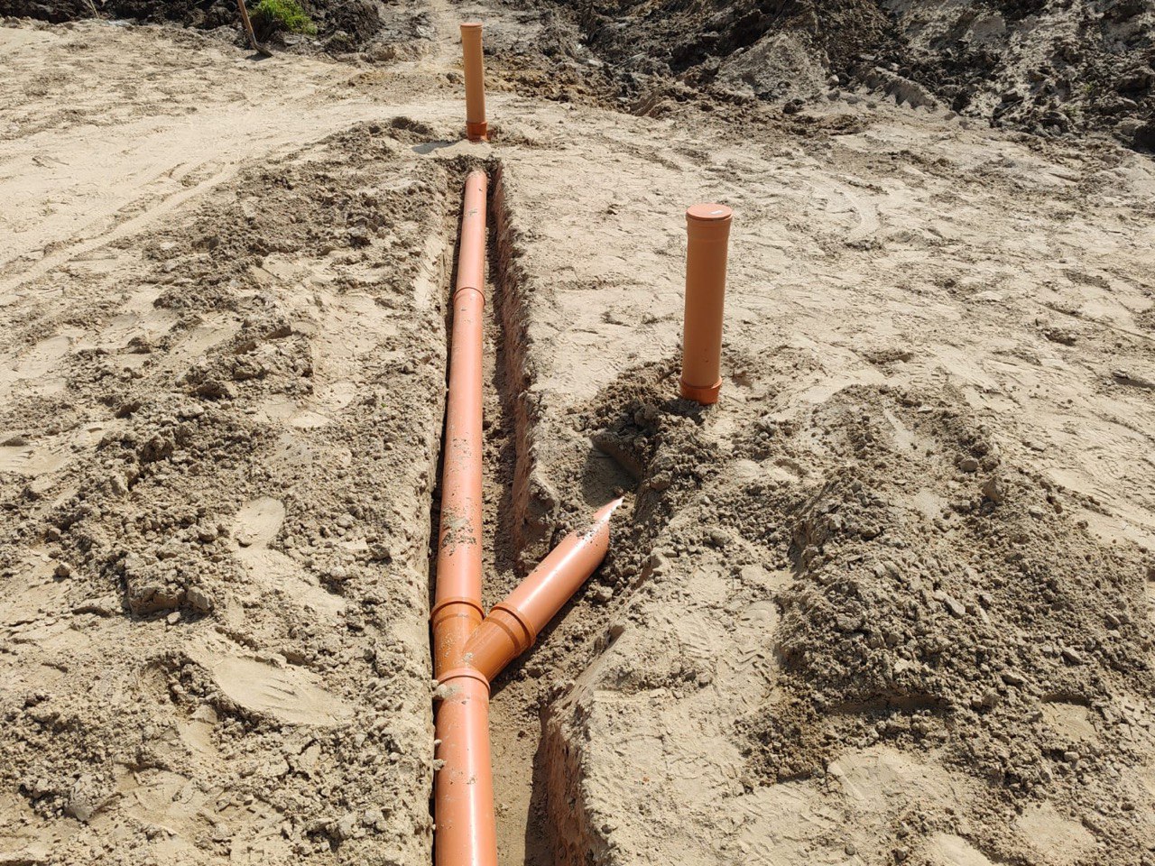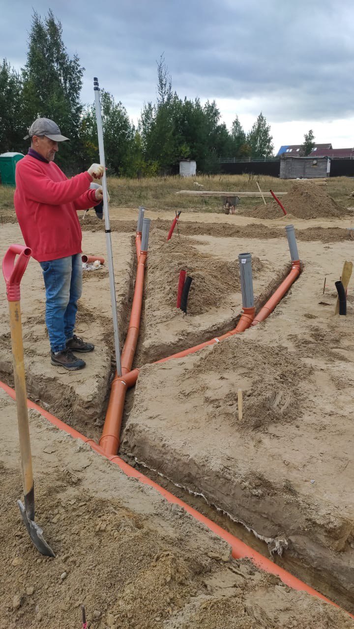 Строго по проекту смонтировали скрытые подземные коммуникации (разводка канализации и закладные).