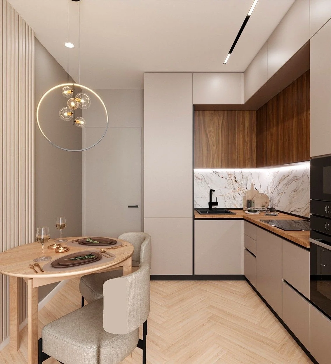 • Натуральный шпон (выглядит как массив, но практичнее).